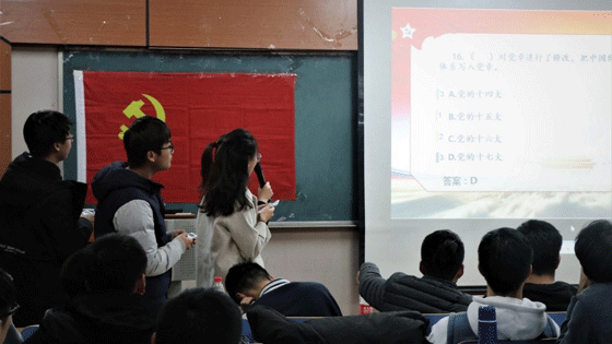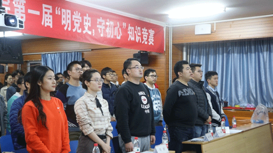 为深入学习习近平新时代中国特色社会主义思想和党的十九大精神,贯彻落实中共中央和学校党委开展“不忘初心,牢记使命”主题教育系列活动的工作要求,2019年11月15日,在学院党委的支持下,土木与资源工程学院第一届“明党史,守初心”知识竞答比赛在土木楼402成功举办。土木与资源工程学院党委副书记邓波老师、团委书记郝子棋老师、党建专项工作辅导员赵莹莹老师及各本科生党支部书记出席了本次活动。活动吸引了本科生全体党员参加活动,旨在通过寓教于乐的活动形式,鼓励学生党员深入学习党的理论知识,明确党员的权利与义务,激发在校学生努力学习,切实担负起新时代大学生的责任与使命。活动在雄壮的国际歌中拉开序幕。