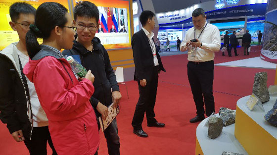 参观期间,学生在各位老师及小班主任的组织下开展活动。同学们认真聆听带队老师以及展位负责人的讲解,初步认识了立环高梯度磁选机、智能传感分选系统、频率谐振采集器、地面钻机、无人驾驶采矿车、新型地质勘探无人机等先进的仪器设备,通过全息投影、VR等先进技术体验并学习到了基础的矿业知识,同学们热情高涨,积极与展位负责人互动沟通,了解了智能化的矿产勘查、开采、加工、技术装备。同学们对珠宝展区及各企业展位中的矿石标本等具有浓厚的兴趣,在老师、工作人员的讲解下也了解到了珠宝、贵金属等的生产制作过程,对矿业有了更新、更直观的认识。