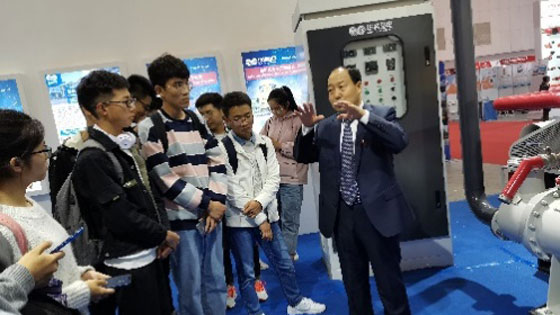 (华特磁电创始人为同学讲解磁选机工作原理)