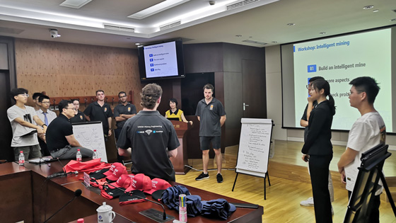 随后,所有学生围绕“Intelligent Mine”进行了Workshop分组讨论及汇报。现场讨论及交流气氛十分活跃,中澳学生友谊也迅速升温。