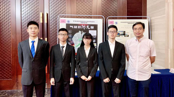 实体作品与模型组的“火拦刀锋”队设计的气凝胶防火服,通过气凝胶及带铝箔陶瓷纤维布等复合材料,实现了消防服防火隔热性能的大幅提升。利用卫星定位技术,将搭载虚拟电话模块的GPS定位芯片植入防火服内部,实现了在火场中定位消防员位置,以及火场信息的及时反馈。最终此作品荣获该组一等奖。