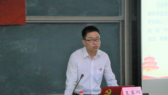 活动最后,王玉印做了总结讲话。王老师表示入党是一件严肃认真的事,发展党员应将政治标准要求放在首位,积极分子应该结合自身实践,重视理论学习,提高为人民服务的思想觉悟。