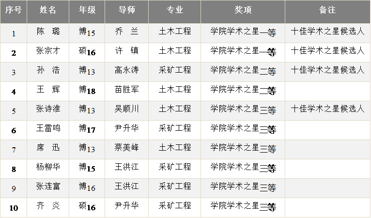 最终,结合现场答辩分数,经评审委员会审议,拟推荐10名研究生为学院第十四届研究生学术之星,其中陈璐、孙浩、张诗淮、张宗才将代表学院参加北京科技大学研究生十佳学术之星的评选。