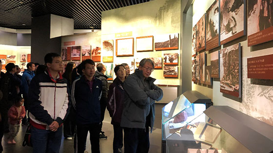 参观过程中,讲解员介绍:平北抗日斗争异常残酷,日寇实行“杀光、烧光、抢光”之三光政策。“强化治安”、“集家并村”制造无人区。在庞家堡,日寇屡次制造血案,屠杀我矿工两万七千余人。平北军民,同仇敌忾,众志成城,为坚持抗战,争取胜利,付出重大牺牲。仅龙关、赤城两县,每六人既有一人为国捐躯。优秀指挥员,十团团长白乙化光荣殉国;连长谢瑞沙场浴血;当代佘太君邓玉芬毁家抒难,献出丈夫爱子七人;民兵英雄何金海,大摆地雷阵,威破敌胆。凡此气壮山河之英雄业绩,不胜枚举,抚今追昔,慷慨悲歌,无愧于中华民族之魂。