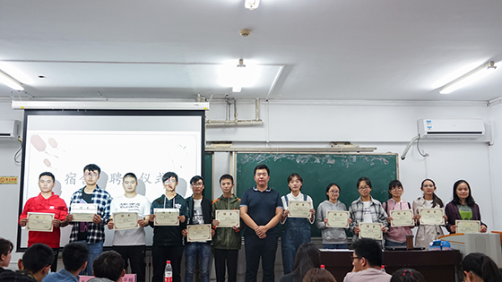 培训结束后,由郝子棋老师、张卓勋老师和学生会主席徐岳分别为到场的宿舍长颁发聘任书并且合影留念。