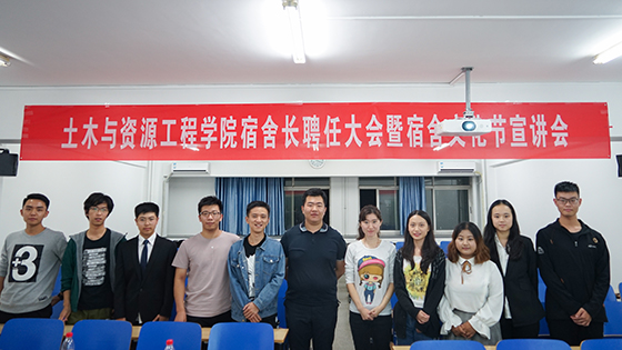 为创造温馨的住宿环境,促进寝室间的情感交流,营造良好的寝室文化氛围,通过宿舍窗口展现校园文化,充分发挥宿舍集体作为大学生基本群体组织的重要作用。9月25日晚,土木与资源工程学院“2018级宿舍长聘任大会暨宿舍文化节宣讲会”在土木楼201成功举行。土资学院团委书记郝子棋老师、18级辅导员张卓勋老师以及土资团学的主席团成员出席本次活动。