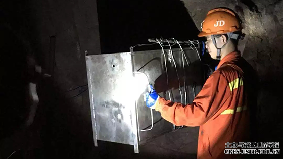 会后,科技服务团成员于8月9日至14日进行了梅山铁矿井下的调研,平均每天下一次井,对其地质条件、巷道类型、生产工艺、装药工艺,产尘过程有了更为深入的理解,并根据最新调研结果,形成了以多组份水炮泥降尘及干雾除尘为核心的除尘方案。随后在接下来的日子里,立足于梅山铁矿的现有条件,指导工人完成了粉尘在线检测系统的组装、调试等工作。为防止井下冲击波对设备的影响,服务团成员设计了防爆监测车以固定设备,进行了井下粉尘浓度的在线监测,发挥了安全人的专业特长与优势,为梅山铁矿的井下防尘提供了新的思路与见解。