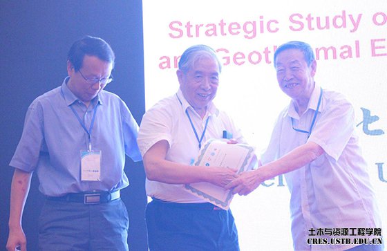 在专家报告环节,中国工程院院士、北京科技大学教授蔡美峰受邀做题为《深部采矿与地热开发结合双赢战略思考》的主题报告,并由王思敬院士为其颁发荣誉证书。王院士点评道,蔡院士的精彩报告从国家乃至世界的战略高度,为地热的科学高效开发指引了方向,使其与已较为成熟的深部开采技术相结合,实现双赢!