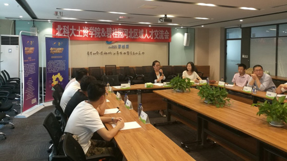 下午两点,公司举办北科大博士与碧桂园河北分公司交流沙龙,人力总监马庆敏,元氏项目总任邵明,四位碧桂园“未来领袖”博士生同我校学生亲切交流。各位领导和博士通过自身的成长经历,风趣幽默地讲述了自己在碧桂园的工作和体会,毕业于我校冶金工程的博士生许志刚更是结合自身的职业规划和心得体会,同师弟师妹们分享经验。胡老师感谢了企业对我院师生等我热情接待,也介绍了学院的基本情况,表示希望与企业建立长期合作机制。我院博士也就自己关心的问题,如房地产企业的发展前景,就业区域的选择,未来领袖的发展路径,面试技巧等,同企业代表热烈交流,沙龙在轻松愉快的氛围中结束。