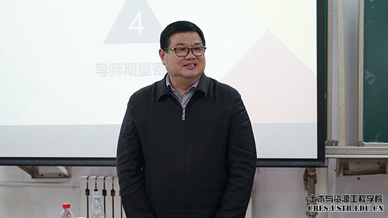 首先,赵金丹老师宣布会议正式开始,他向全体同学们正式介绍了土木与资源工程学院“双导师”制度并且隆重介绍了到场的嘉宾。在场的同学们也各自简短地介绍了自己。