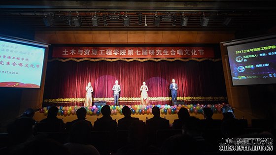 为引导青年深入学习贯彻十九大精神,思考使命责任,树立昂扬向上的价值追求,展现当代青年爱国热情和蓬勃向上的精神风貌,12月20日晚7点,“土木与资源工程学院第七届研究生合唱文化节”文艺汇演在教职工礼堂成功举行。学校规划与学科建设办公室主任乔兰、校团委书记苏栋、学生工作部、武装部副部长陈大鹏、研究生工作部蒋灵斌、学院党委书记纪洪广、副院长尹升华、副院长耿倩男、党委副书记邓波及各兄弟学院研究生会主席、学院各系所负责人、教师、辅导员参加活动,与在场学生一同欣赏了这场精彩纷呈的盛会。