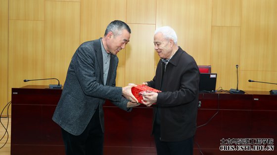 活动开始,吴爱祥副校长致欢迎辞。他向现场观众介绍了钱七虎院士在土木工程领域做出的卓越贡献,同时对钱院士为我校科研、学科建设、人才培养等工作做出的大力支持与帮助表达了诚挚感谢。希望广大师生向钱院士学习严谨治学、学无止境的品质,不断加深对专业知识的学习,将来更好的服务于社会,贡献于祖国。吴爱祥代表学校向钱院士赠送寓意“求实鼎新”的纪念鼎。
