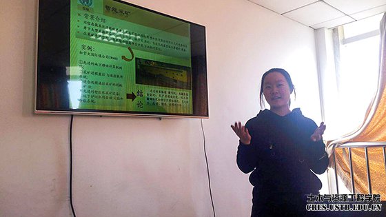 矿业工程2017级本科生程曦经选拔将代表矿业学科参加2018年北京科技大学——日本东北大学双边交流会,并就自己感兴趣的学科前沿方向进行5分钟的ppt汇报交流,资源工程系和矿物加工工程系的年轻教师积极报名参与汇报PPT的指导工作。
