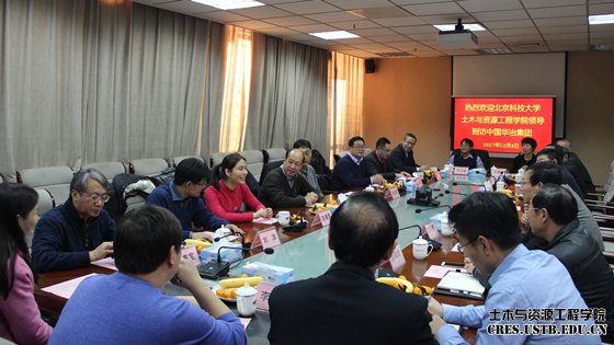2017年7月,北京科技大学土木与资源工程学院与中国华冶科工集团签订全面战略合作框架协议,为了进一步增进了解,落实校企合作的项目。2017年12月6日,土木与资源工程学院与中国华冶科工集团校企合作洽谈会在中国华冶科工集团举办。中国华冶科工集团党委书记、董事长刘玉军,党委副书记、总经理周志军,党委委员、副总经理吴俊祥以及安监部、投资与资产管理部、矿山事业部、工程管理与技术质量部人力资源部等相关部门负责人和土木与资源工程学院院长金龙哲,党委书记纪洪广,副院长李长洪、耿倩男,党委副书记邓波,各系教授代表及就业指导老师参加本次洽谈会。