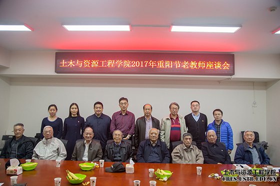 下午2点,在土木楼214会议室,学院组织召开了“重阳节老教师座谈会”,共邀请到了任天贵、卢寿慈、高澜庆、陈希廉、方祖烈、陈玉鑫、于亚伦、袁怀雨、刘世光等老教授们参加了座谈,院领导班子全体成员以及资源系、土木系、矿加系负责人出席。