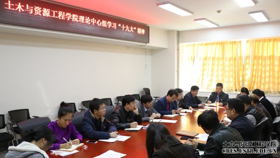 为深入学习宣传贯彻党的十九大精神,把全院师生的思想统一到党的十九大精神上,把力量凝聚到统筹规划学院“十三五”稳步发展的道路上, 2017年11月3日上午9:00在土木楼214会议室召开了学院党委理论学习中心组学习党的十九大精神暨党建迎评工作动员会,学院领导班子成员及各系所、学院机关、实验中心负责人参加了会议。会议由学院党委书记纪洪广主持。