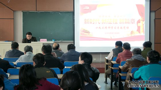 11月9日下午,校党委副书记、纪委书记戴井岗莅临土木与资源工程学院,以深入学习宣传贯彻党的十九大精神为主题,给我院领导班子成员、全体教职工以及学生党支部书记讲了一堂生动深刻的党课。会议由学院党委书记纪洪广主持。
