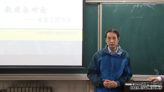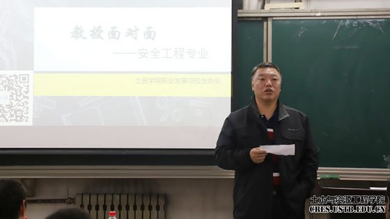 10月18日晚7点30分,由土木与资源工程学院职业发展与校友协会举办的“教授面对面”安全工程专场在土木楼301成功举行。参加此次活动的有安全工程系主任张英华教授,安全工程系教师杜翠凤教授、龚敏教授,安全工程系书记黄国忠副教授,安全工程系副书记黄志安副教授以及安全工程17级新生。