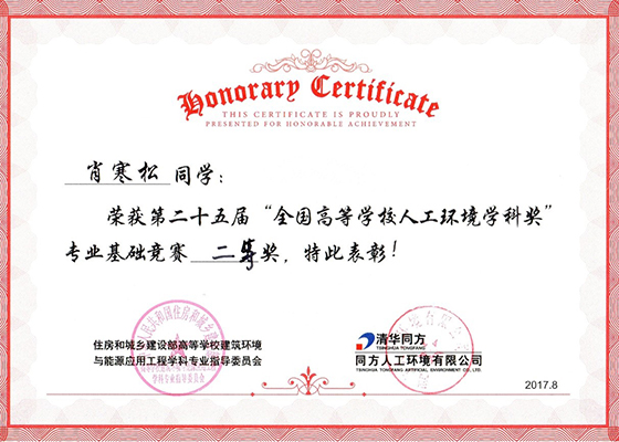 “人环奖”竞赛历史悠久,1992年由住房和城乡建设部高等学校建筑环境与能源应用工程学科专业指导委员会发起设立,同方人工环境有限公司提供资金赞助。25年来已成为我国建筑环境与能源应用工程专业历时最长、参赛规模和影响最大的学科竞赛,其考试成绩被视为全国高校建环专业基础教学质量的测评依据,也被多数高校作为学生评定奖学金和保研的重要依据。我校从2009年起参加此项赛事,在吴延鹏老师的指导下取得了6个二等奖,2个三等奖的优异成绩。