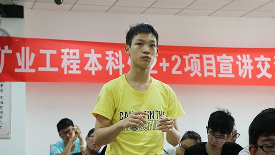 交流会伊始,耿倩男热烈欢迎了刚刚结束军训生活、即将迎来大学生活的新生们,一起分享了同学们军训生活的精彩照片,简要提出大学生活的蓝图,并详细介绍了矿业工程本科生2+2项目的内容及背景,让同学们对大学生活的规划及2+2项目有了初步的认识和思考。