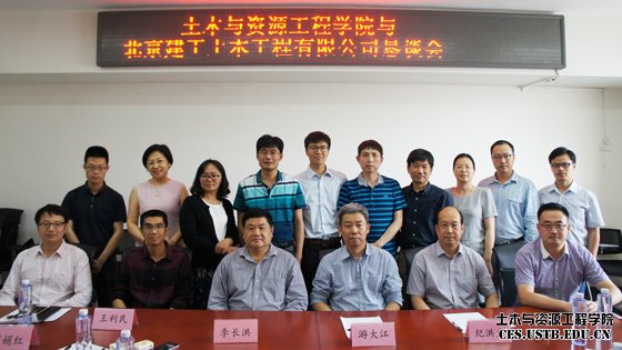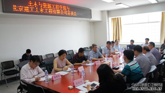 副院长纪洪广介绍了我院基本情况,建工土木公司副总经理游大江介绍了公司发展概况;随后,党委副书记邓波介绍了我院与相关建筑施工企业开展全面战略合作的情况,刘洋教授介绍了近年来我校土木工程学科的发展与实验平台概况,李远副教授介绍了我院与承德路桥公司校企合作的经验与成果。