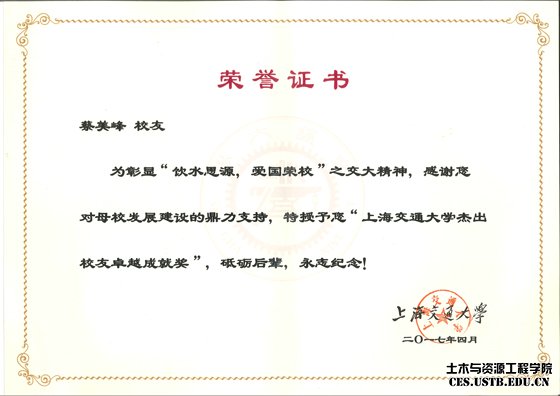 2017年4月8日蔡美峰院士出席了上海交通大学121周年校庆和1967届校友毕业50周年返校日活动。校庆大会上,现任校党委书记姜斯宪和前任(1992-2003)校党委书记王宗光一起向蔡美峰院士颁发了2017年杰出校友卓越成就奖(本年度唯一获奖人)。
