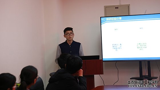 保研本校的辜珏就保内还是保外的问题进行了详细的分析,并推荐了适合本专业保外的学校,他希望有保研想法的同学尽早考虑保内还是保外并选择适合自己的学校。他还结合身边“黑马”的例子,告诉在座同学机会只留给有准备的人,不到最后一刻决不放弃。