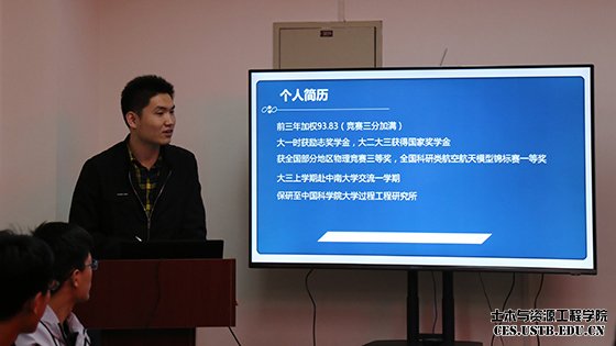 保研至中科院过程所的董丙旭结合自己的经历,从保研历程和北科生活两方面来分享自己的经验。他认为保研是场持久战,在对专业、学校和老师的选择方面进行了着重讲解,强调了提前准备的重要性;身为16级小班,他还在同学们的生活及学习方面提出实质性的意见,他认为大学是一个不断认识自己的过程,只有不断地对自己进行假设与证实才能获得成长。