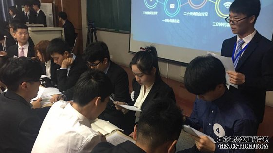金龙哲书记在开幕式致辞中指出:学院深入贯彻落实《关于加强和改进新形势下高校思想政治工作的意见》,营造良好的生涯教育氛围,倡导青年大学生将人生理想与国家建设需求紧密结合,引导学生投身国民经济建设主战场,努力占领行业的至高点。随后,孙长林老师宣读了比赛规则。经过前期的简历筛选,从76名学生中推选出56人参加了此次分站赛决赛。比赛第一环节是无领导小组讨论,比赛一开始,选手们就纷纷进入状态,经过激烈的讨论并由评委老师点评后,最终决出八位选手进入第二轮结构化面试。
