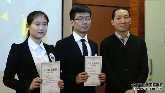 4月6日晚19:30,土木与资源工程学院大学生生涯规划与发展辅导月启动仪式暨第九届模拟求职大赛(土资&高工)分站赛在土木楼402成功举办。此次活动由土木与资源工程学院和高等工程师学院的职业发展与校友协会联合举办。活动中邀请到了中化国际招标有限责任公司、恒大集团、广联达科技股份有限公司、艾默生过程控制(北京)的HR们作为评委出席。到场的嘉宾有北京源型悦雅教育咨询有限公司首席专家陈郁,职来职往嘉宾、华图教育副总裁于洪泽、土木与资源工程学院党委书记金龙哲、学校招生就业处副处长孙长林、高等工程师学院学生工作副院长王小宁、土木与资源工程学院党委副书记邓波。活动吸引了团中央“青年之声”的关注并到场录播。