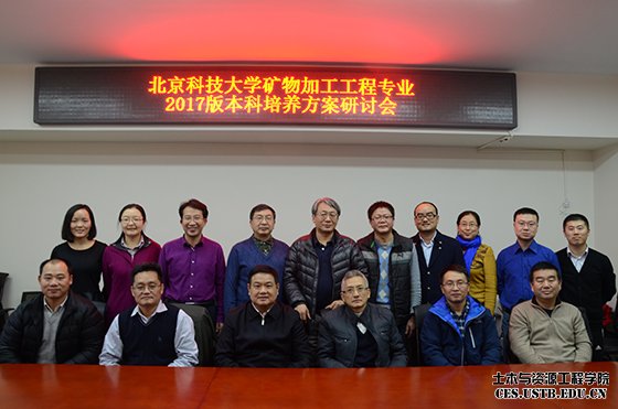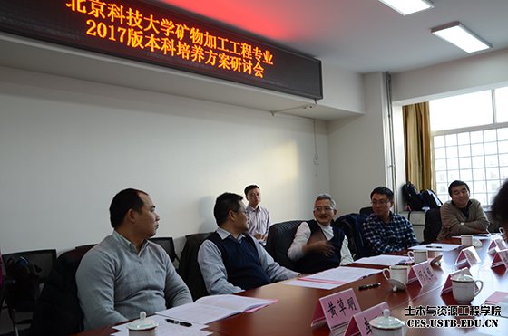 根据我校2017版本科培养方案制定规划,为培养基础扎实、实践能力强、具有创新创业意识和国际视野的高素质创新人才,着力培养矿业领域未来学术精英和行业领袖,12月8日,矿物加工工程系在土木楼214会议室召开了“北京科技大学矿物加工工程专业2017版本科培养方案研讨会”。本系邀请了中国五矿集团科技部教授级高工何发钰副总经理、中国有色矿业集团科技部教授级高工朱景和主任、教授级高工黄草明处长、中南大学贺治国教授、HMR集团教授级高工魏明安院长等来自大型企业、兄弟院校的校外专家,以及副院长李长洪教授、孙体昌教授、系主任孙春宝教授、系书记李正要,矿物加工系全体教师参加了本次会议。