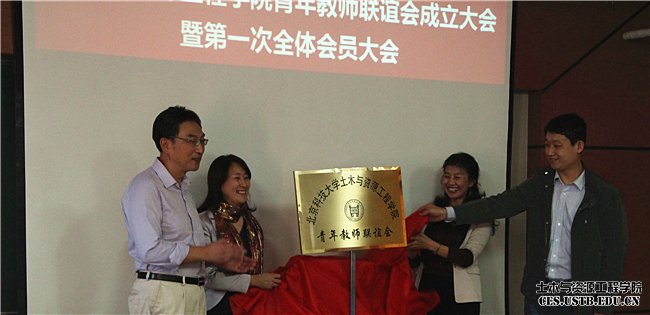 王媛宣读了土木与资源工程学院青年教师联谊会第一届理事会人员名单,并与与会嘉宾共同为联谊会揭牌。