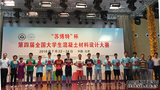 “全国大学生混凝土材料设计大赛”是面向全国高校土木工程与无机非金属材料专业大学生的一项科技竞赛活动,由教育部无机非金属材料专业教学指导委员会、中国混凝土与水泥制品协会教育与人力资源委员会、全国高等学校建筑材料学科研究会共同主办,每两年举办一次。本届大赛以“学以致用、低碳创新”为宗旨,由北京建筑大学、高性能土木工程材料国家重点实验室以及江苏苏博特新材料股份有限公司联合承办。