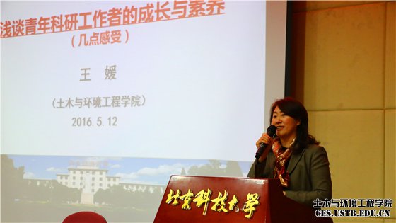 启动仪式后,土木与环境工程学院院长、王媛教授带来第一场主题报告-浅谈青年科研工作者的成长与素养。她从问题的背景、个人成长经历及感悟、科研素养三个方面,以知心朋友的口吻讲述了自己的科研成长经历,分享自己求学生涯和职业生涯的所思所悟,深入浅出地解读青年教师和研究生朋友们作为科研工作者应该具有的素质和能力,精彩的讲述和亲和力引得同学们阵阵掌声。通过报告,青年教师和研究生表示更加明确了自己的科研目标,将努力提高自己的科研素养,为今后的科研工作打下良好的基础。