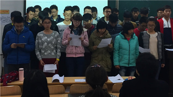 土木1502班带来了《我的中国梦》诗歌朗诵,感情饱满真挚,演绎出对“中国梦·青春梦”的理解,极富感染力。同学们纷纷踊跃阐述了自己眼中的“我的大学我的中国梦”,在交流中大家逐步认识到,中国梦是实现民族复兴、国家富强、人民幸福,而对于我们当代大学生,应该牢记“空谈误国、实干兴邦”,立足本职、埋头苦干,从自身做起,从点滴做起,成就属于自己的人生精彩。