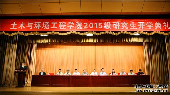9月12日下午,北京科技大学土木与环境工程学院2015级研究生开学典礼在校教工活动中心隆重举行。副校长吴爱祥,学院党委书记金龙哲,副院长纪洪广、李长洪、耿倩男,学院各系所主任、教师代表及400余名研究生新生参加了开学典礼。典礼由学院学生工作负责人邓波主持。