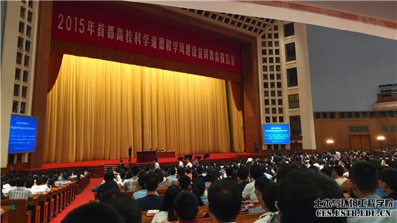 为加强研究生学风建设和科研诚信教育,提高研究生学术规范的素养,首都高校科学道德和学风建设宣传教育报告会于9月16日在北京人民大会堂成功举行。本次活动由中国科协、教育部、中科院、社科院、工程院、自然科学基金委、北京市政府联合举办。全国政协副主席、中国科协主席韩启德,中国科学院院士吴梦超、薛其坤、潘建伟出席会议,大会由中国科协党组书记、常务副主席书记处第一书记尚勇主持,包括我校在内的6000多名研究生新生到现场聆听了报告。