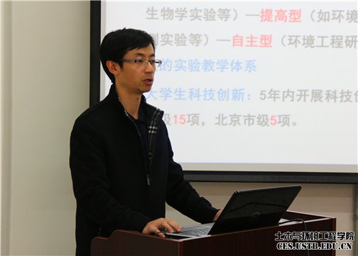 环境工程系唐晓龙教授从实验教学中心概况、教育教学、实验师资队伍、管理模式、设备与环境、教学特色以及下一步工作计划等方面进行了汇报,对环境工程实验教学示范中心取得的成果一一向专家组进行了展示。