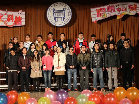 各班表演结束后,由毕业生代表及研会工作人员等上台与全体观众合唱北京科技大学校歌《摇篮颂歌》,表达了对母校的深深热爱之情。
