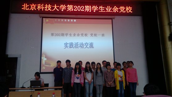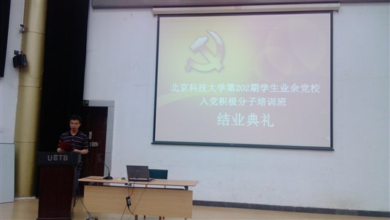 2013年5月27日19:00在学术报告厅举行了北京科技大学第202期学生业余党校结业典礼,学院党委副书记老师、团委书记姜琳婧老师参加了本次活动。