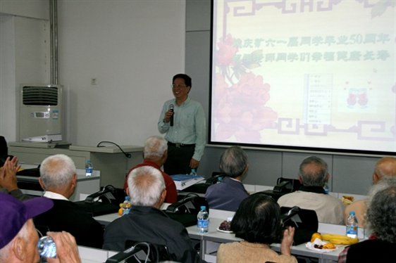 半个世纪前他们匆匆告别,奔赴祖国各地建功立业;五十年后他们再聚北科,共同庆祝毕业五十周年。2011年9月21日上午十时,土环楼205洋溢着热烈的气氛。矿61届校友共聚一堂,回忆年少同窗时光。北京科技大学党委书记罗维东教授亲临会场,一同来的还有党办校办副主任、校庆办常务副主任于成文老师等。