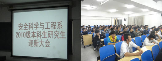 9月29日晚上,在土木与环境工程学院402教室召开2010级研究生迎新大会,会议由党支部书记老师主持,统全体教师、安全工程实验室教师、新生辅导员,以及全体2010级新生,共100多位师生参加了会议。