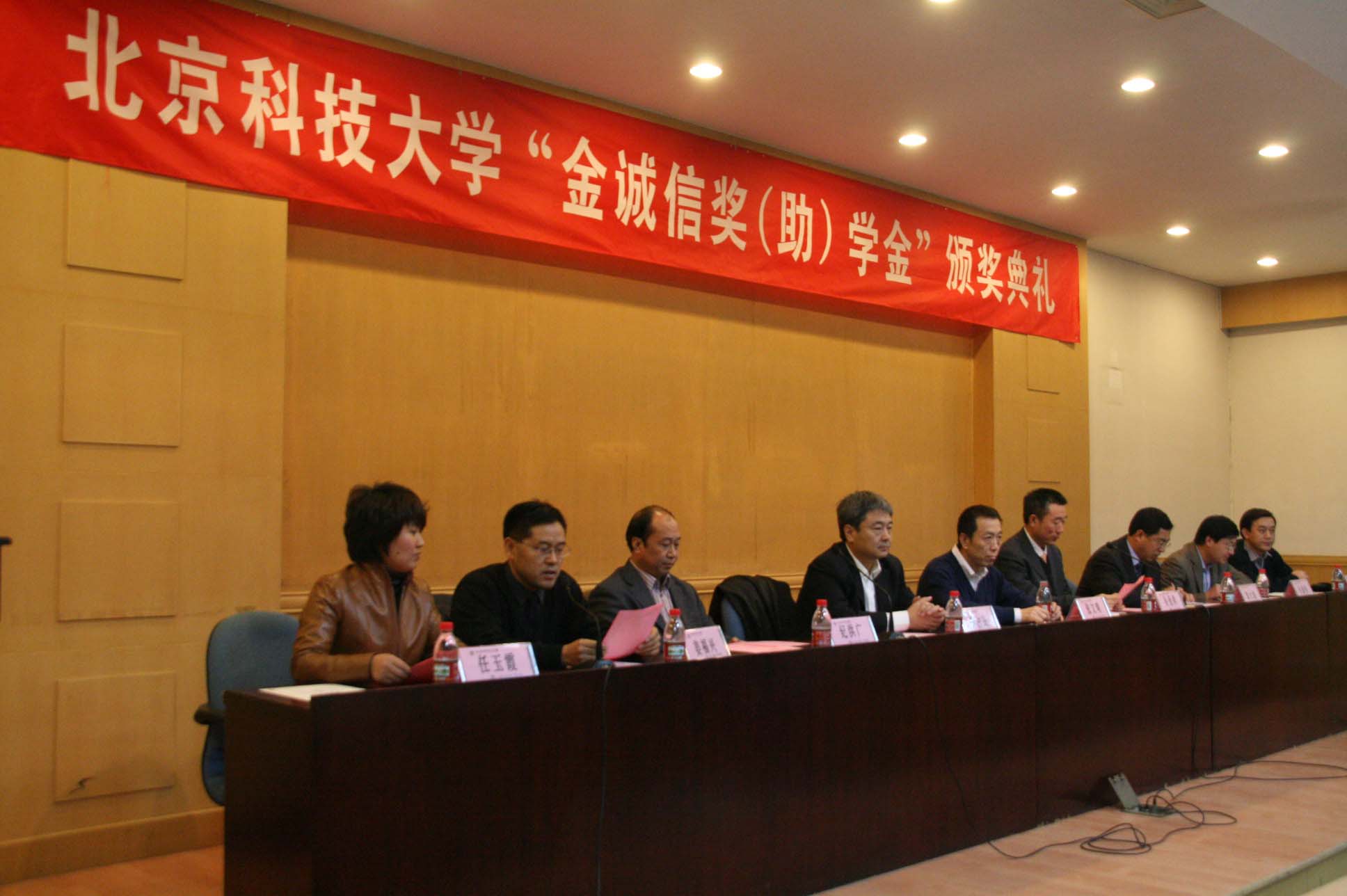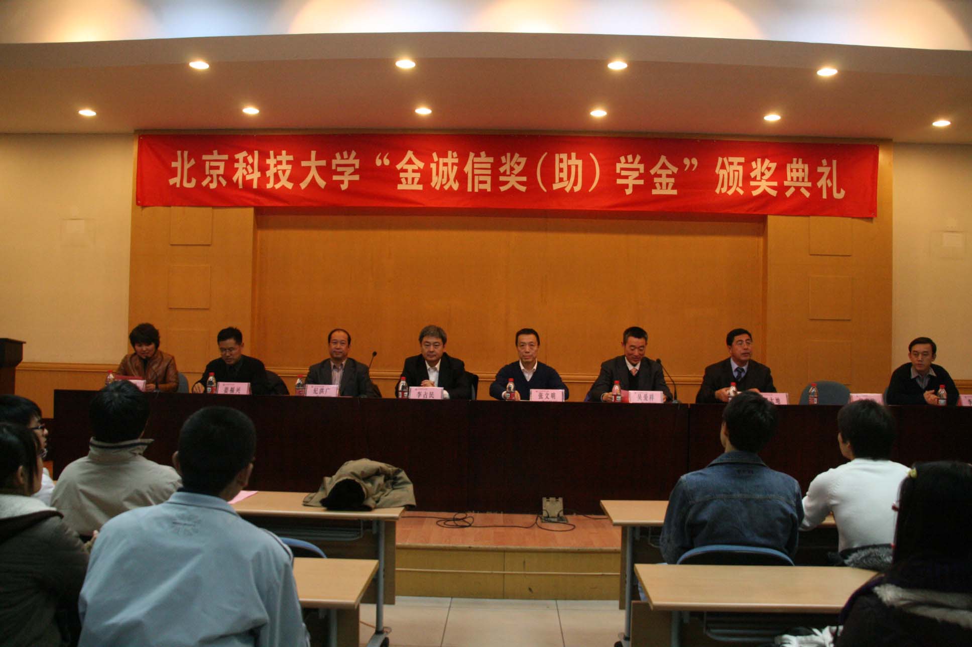 11月20日晚上6点,北京科技大学2009年度“金诚信奖(助)学金”颁奖典礼在建龙报告厅隆重举行。北京金诚信矿业建设集团有限公司总经理李占民、董事会秘书、党委副书记郭大地、北京科技大学党委副书记、土木与环境工程学院院长、副院长、、矿物主任、书记出席了颁奖典礼,颁奖典礼由土木与环境工程学院党委副书记任玉霞主持。