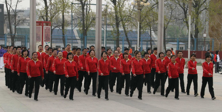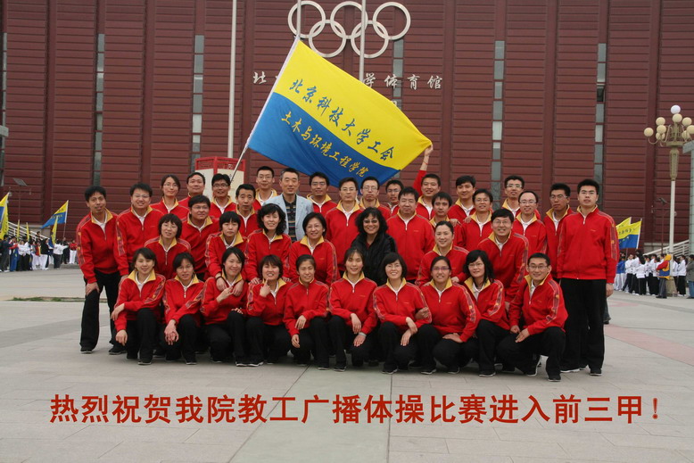 2010年 4月 20日 下午,春暖花开,微风拂面,北京科技大学第35届教职工广播体操比赛在热烈的气氛中开幕。五环广场上14个代表队整齐列队,我院排在第13个出场比赛。