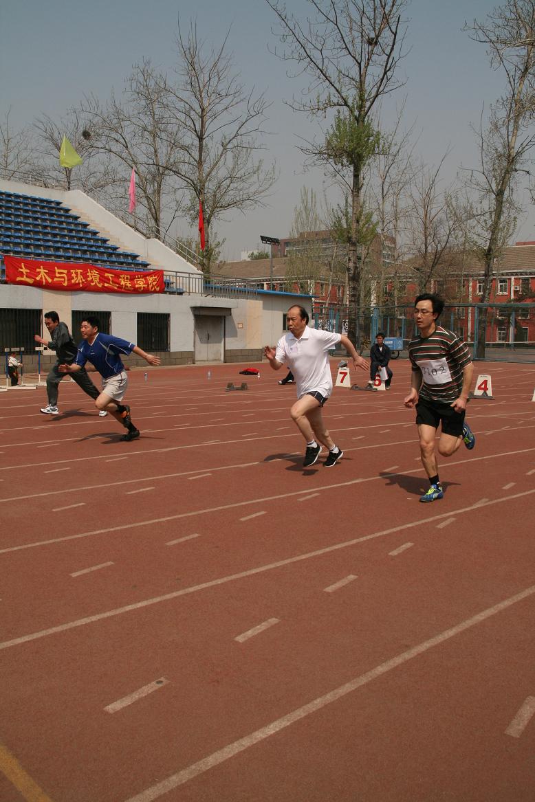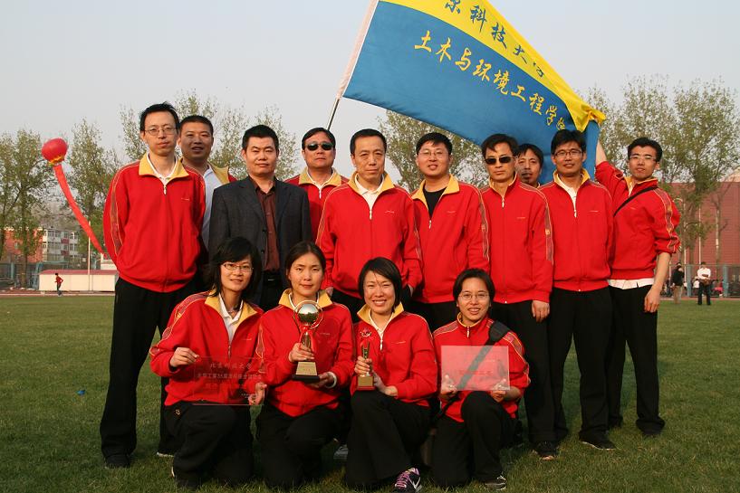 2010年4月24日,北京科技大学第35届教职工田径综合运动会迎着朝阳开幕。土木与环境工程学院方队由院长教授和党委书记教授领队,中国红的队服映红操场一片。在教职工大众广播体操表演、大型团体舞“爱我中华”等盛大的开幕式表演后,党政工团30米托球接力为比赛拉开序幕,院长书记踊跃参赛,极大地鼓舞了参赛队员的士气,在随后的教工30米托球接力、接龙珠、教工甲乙丙组100米、跳远、实心球等比赛项目中不断斩获佳绩,其中男子丙组100米比赛由副院长教授亲自挂帅,勇夺第5名。