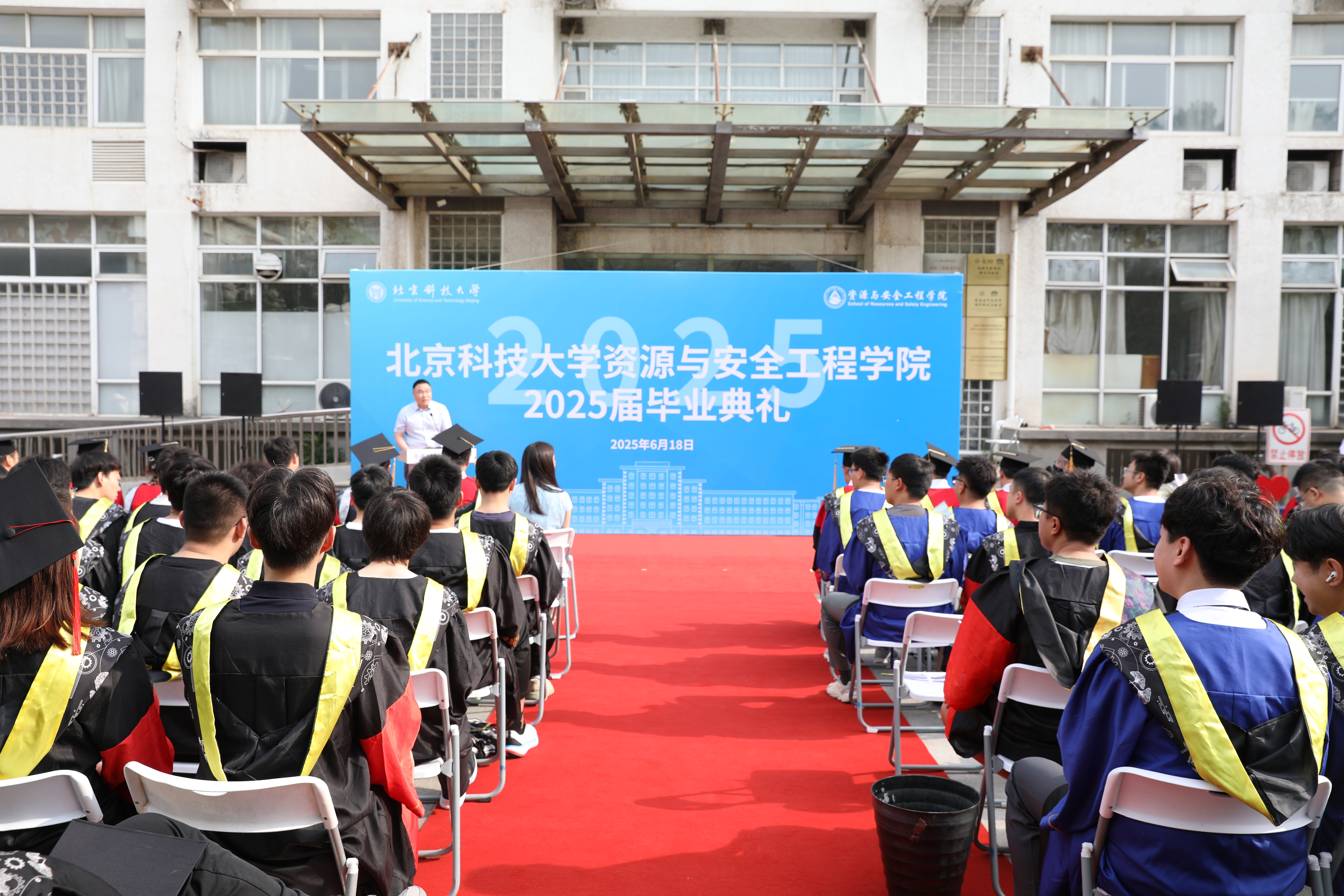骊歌又起,扬帆起航。2025年6月18日,资源与安全工程学院隆重举行2025届学生毕业典礼,庆祝毕业生顺利完成学业,开启人生新的篇章。中国工程院院士吴爱祥,学院党委书记耿倩男,院长苗胜军,副院长钟日晨、李正要、郭奇峰,党委副书记、副院长彭一真,大安全科学研究院执行院长黄国忠、副院长王辉和学院教师代表、全体2025届毕业生和辅导员参加毕业典礼。典礼由学院党委副书记、副院长贾兆义主持。