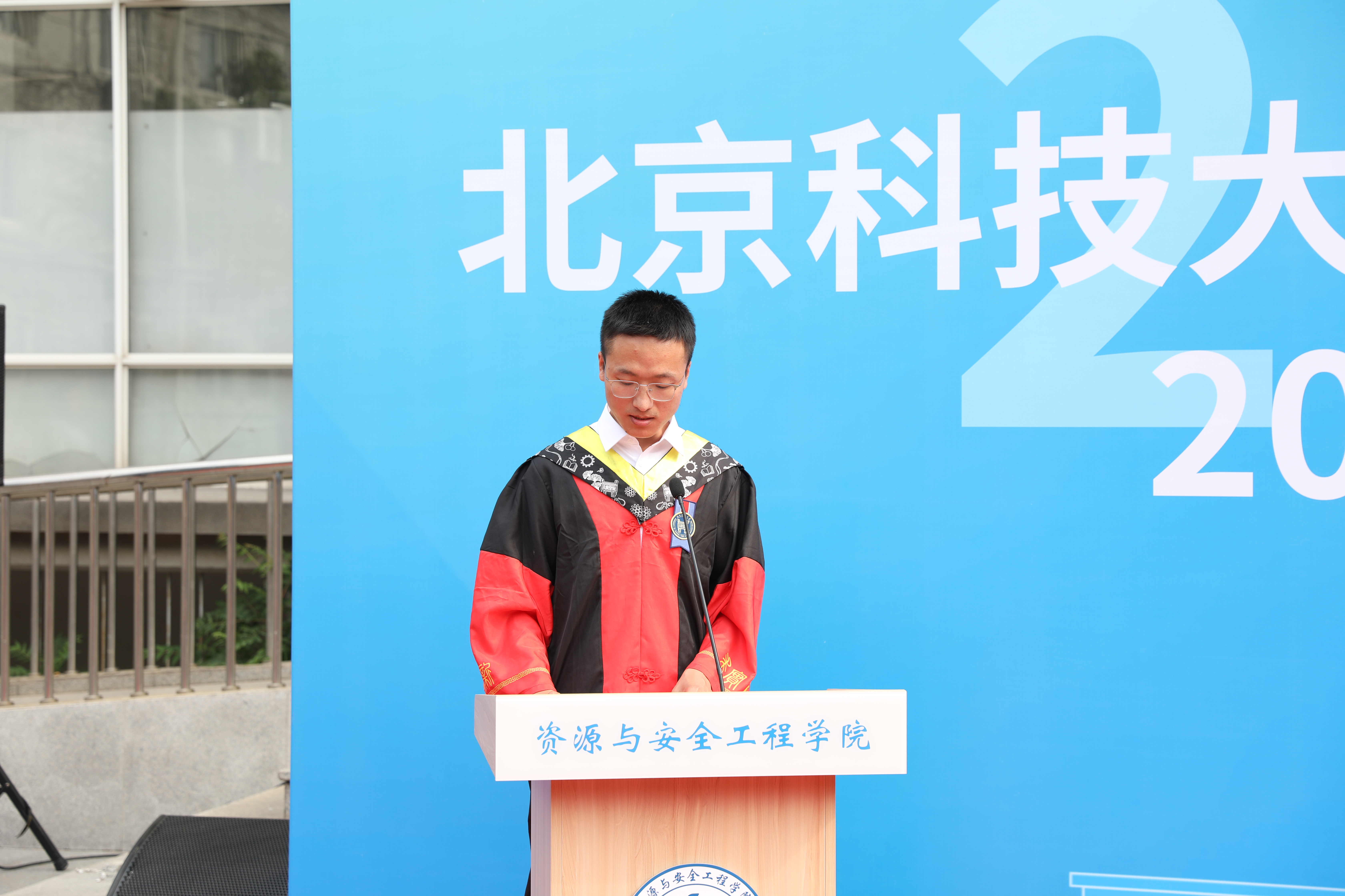 北京科技大学第十九届校长奖章获得者、2025届博士毕业生步允川代表毕业研究生发言。他在发言中分享了三点求学感悟。热爱是科研的“火种”、团队是前行的动力、责任是成长的加速器。并感谢母校赋予的“求实鼎新”精神,表示将带着这份精神,以专业和热情面对未来挑战。号召全体毕业生,无论奔赴矿山、科研院所还是基层,都要铭记“开发资源、保障安全、服务社会”的信念和“北科大资安人”的共同身份,带着热爱与责任出发,成为守护安全、点燃希望的“北科火种”。