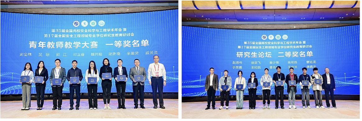 “全国高校安全科学与工程青年教师教学大赛”中,魏祎璇凭借扎实的教学功底和创新的教学方法荣获大赛一等奖,充分展示了我校青年教师卓越的教学水平与育人风范。由黄志安指导的2024级博士研究生于荣霞,在本次年会设置的研究生论坛中表现优异,其学术研究成果荣获二等奖。