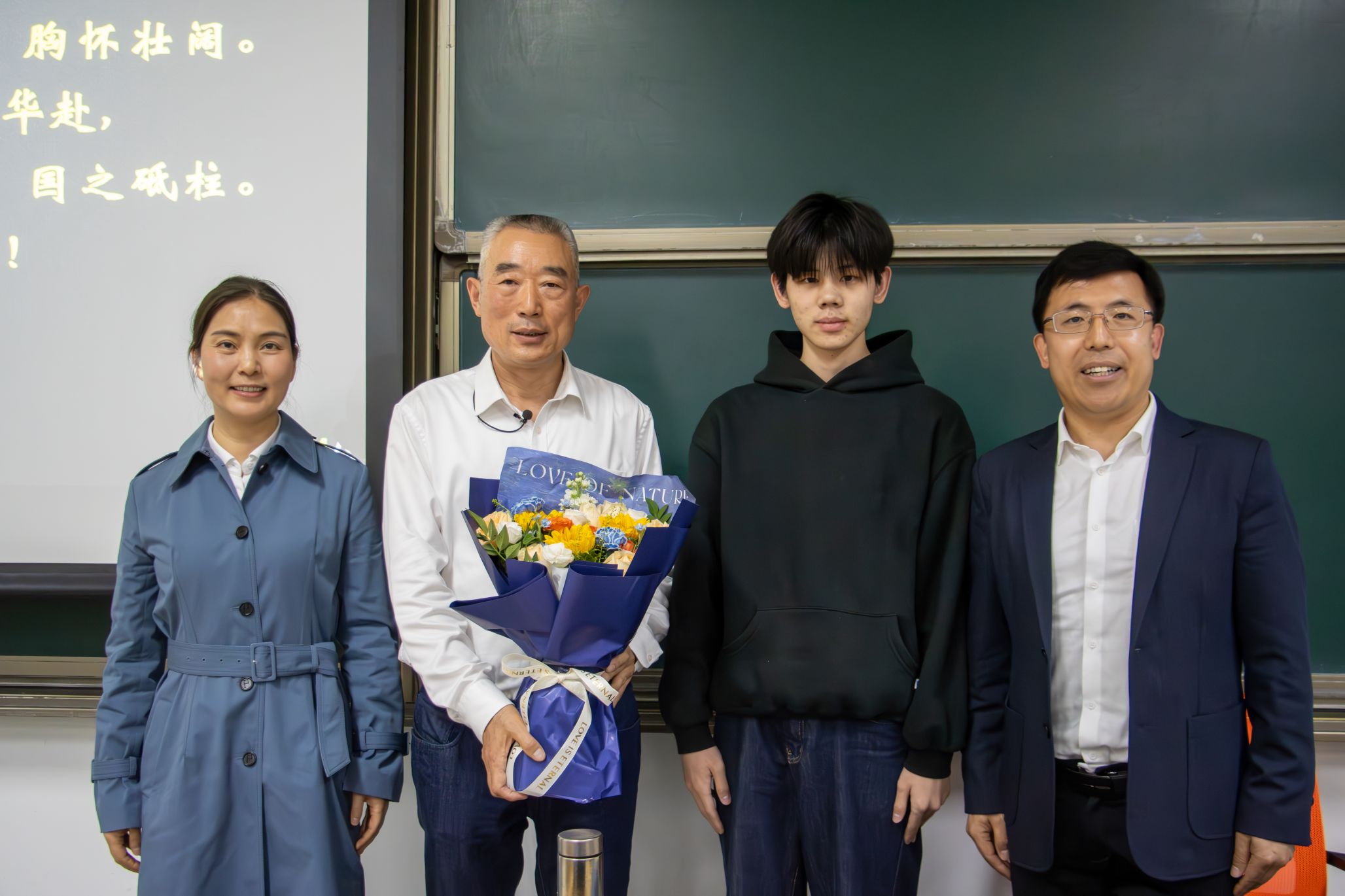 为表达对吴院士的敬意与感谢,2025级学生代表为吴爱祥献上鲜花。