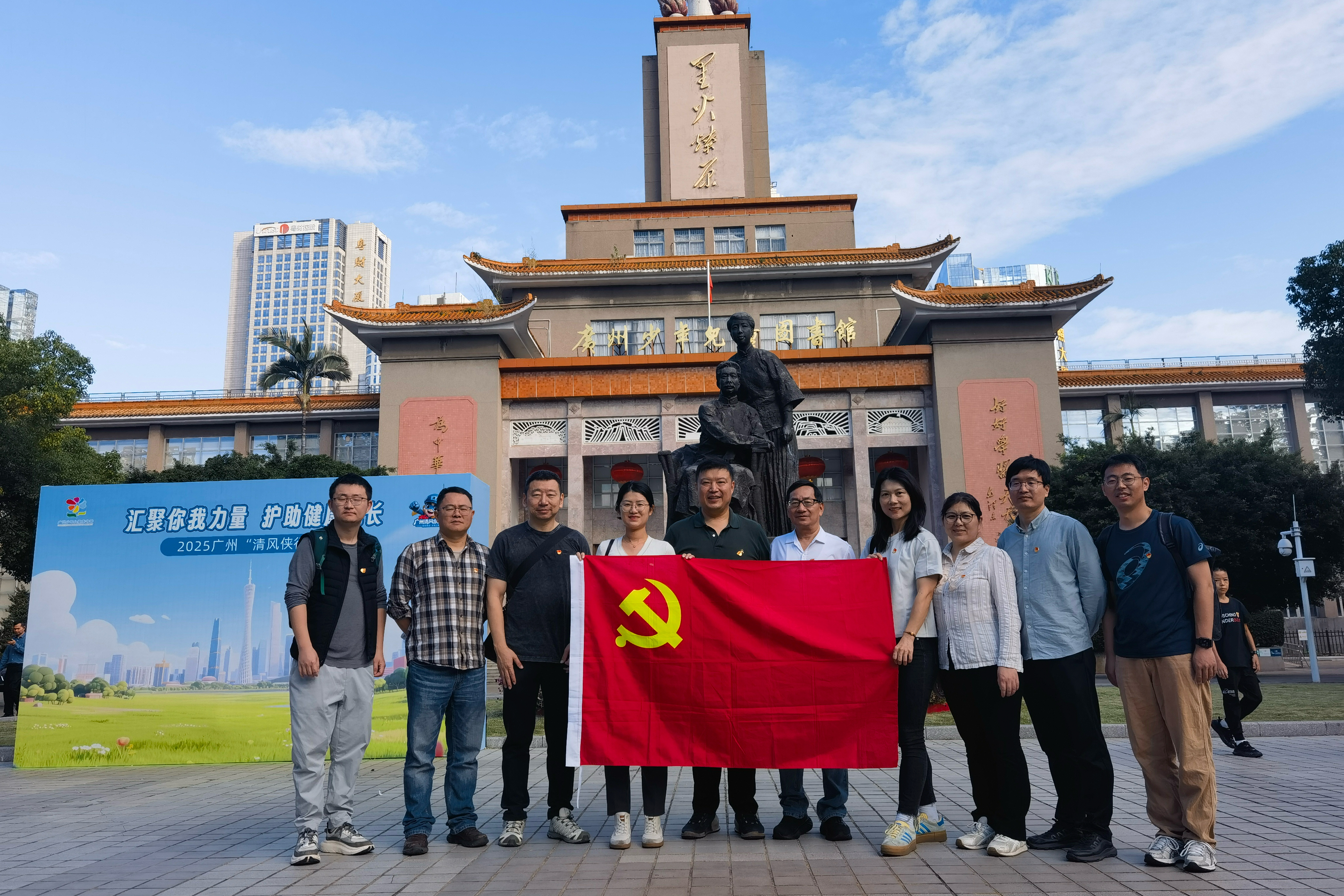 活动首站,支部党员走进广州少年儿童图书馆参观学习。馆内“星火燎原”“为中华崛起而读书”“好好学习”等富有时代气息和教育意义的标语,与浓厚的阅读氛围交相辉映,生动展示了知识启智、文化育人的力量。党员们纷纷表示要自觉把“为国读书、以学报国”内化为自身的价值追求,在科研与教学岗位上不断提升专业素养。